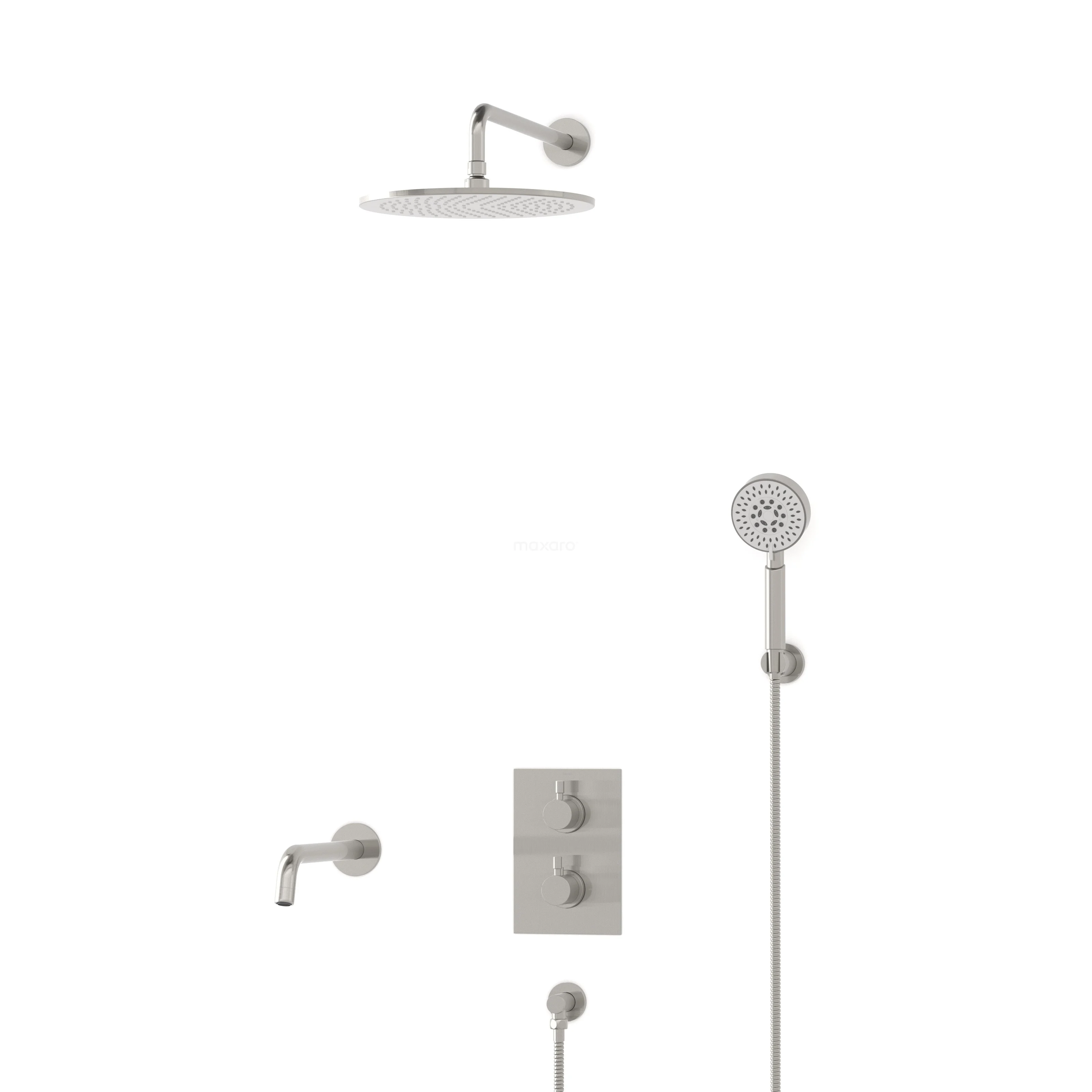 Radius Einbau Badewannenarmatur mit Regendusche | Edelstahl Thermostatisch