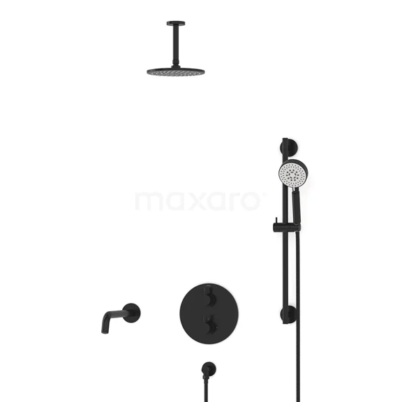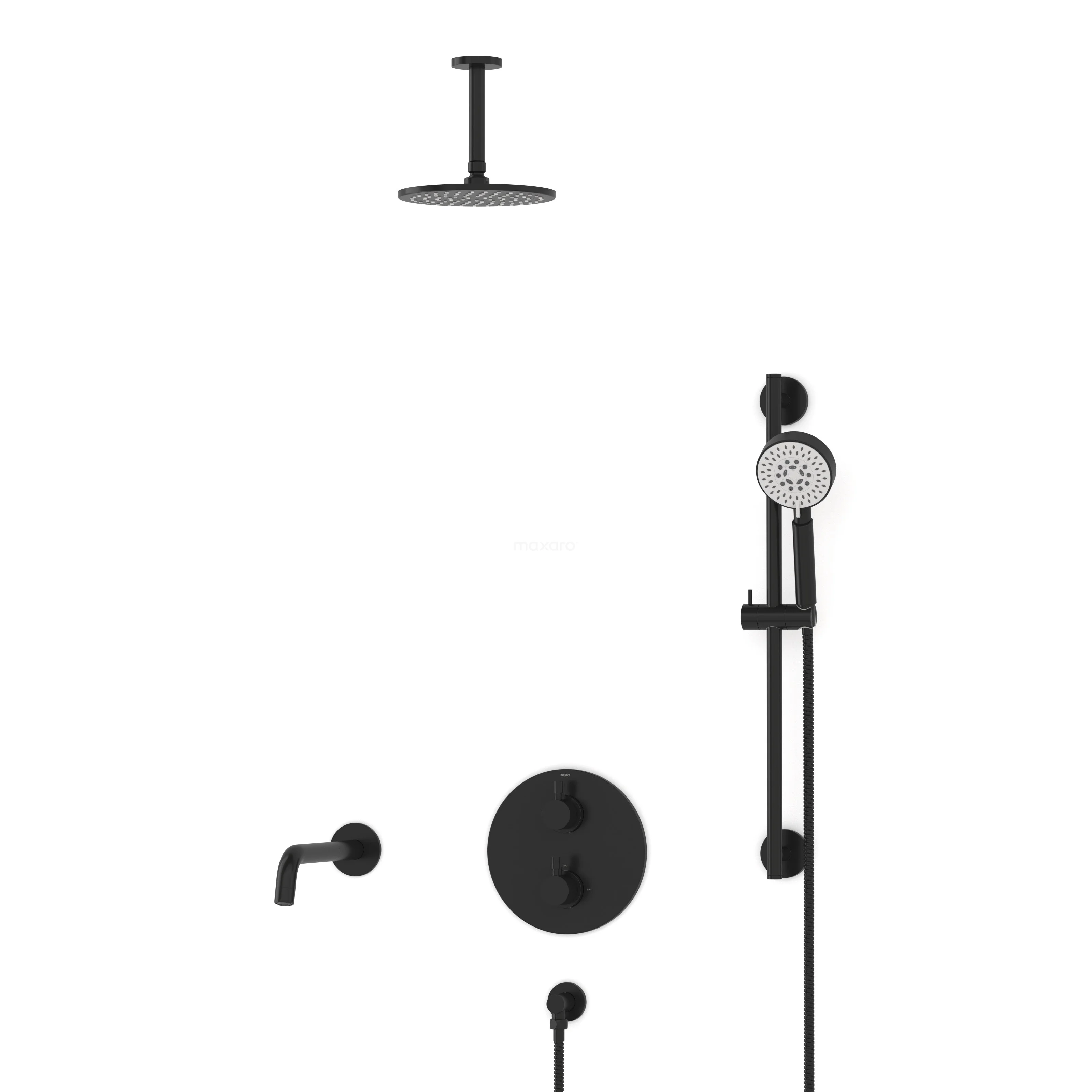 Radius Einbau Badewannenarmatur mit Regendusche | Schwarz Thermostatisch