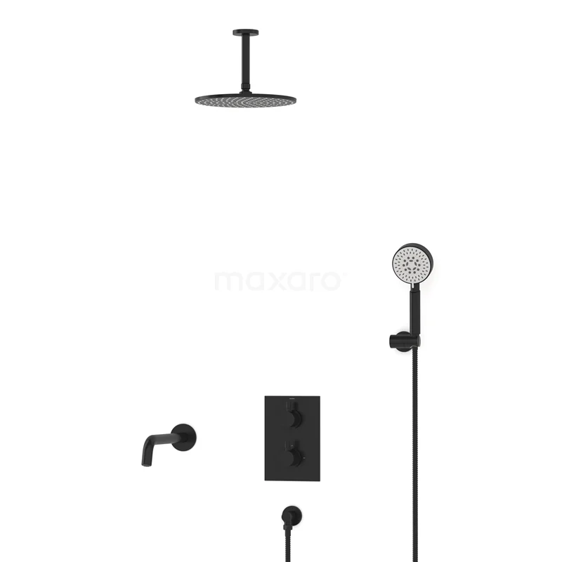 Radius Einbau Badewannenarmatur mit Regendusche | Schwarz Thermostatisch