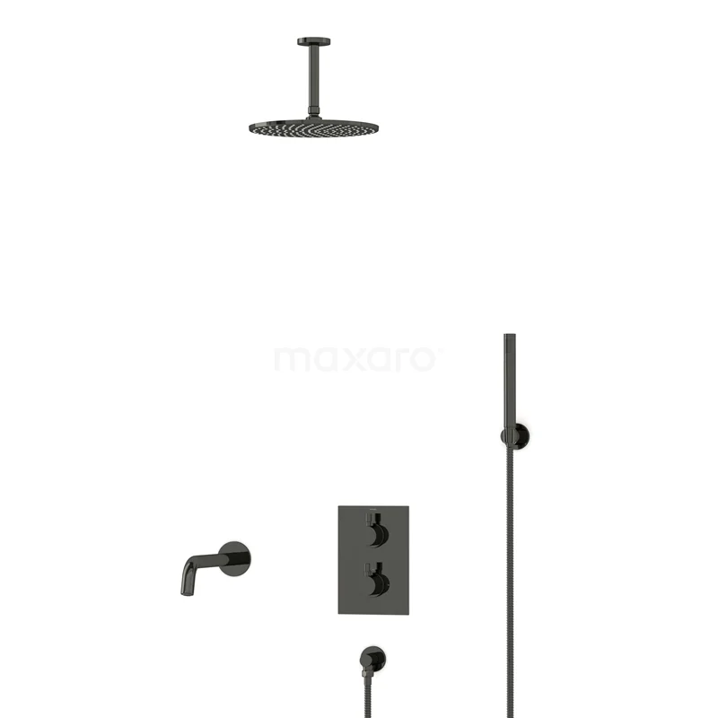 Radius Einbau Badewannenarmatur mit Regendusche | Schwarzchrom Thermostatisch