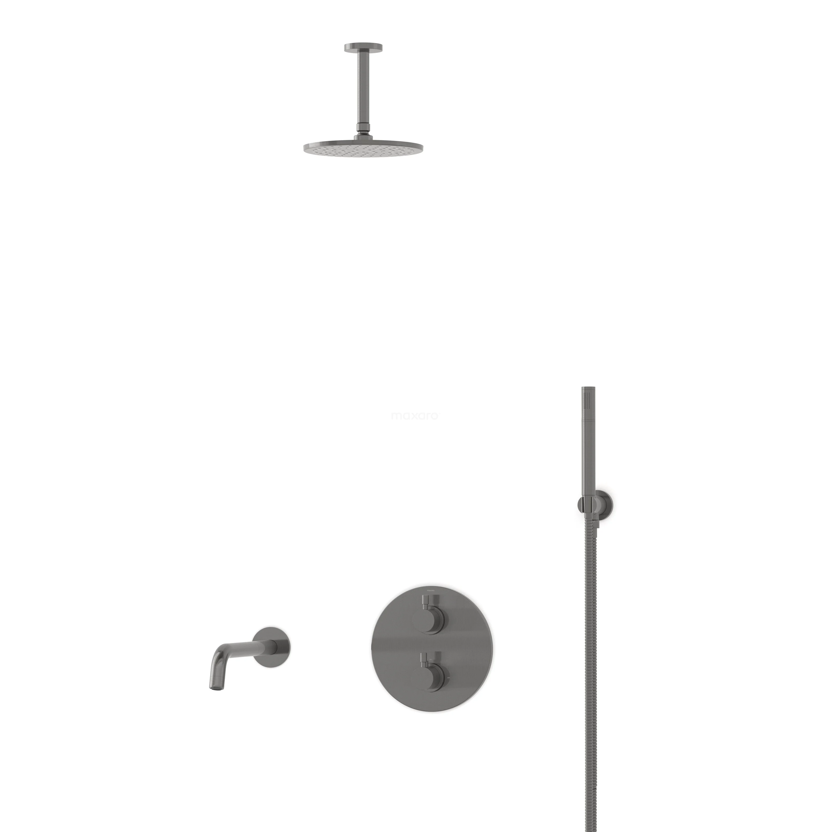 Radius Einbau Badewannenarmatur mit Regendusche | Schwarzes Metall Thermostatisch