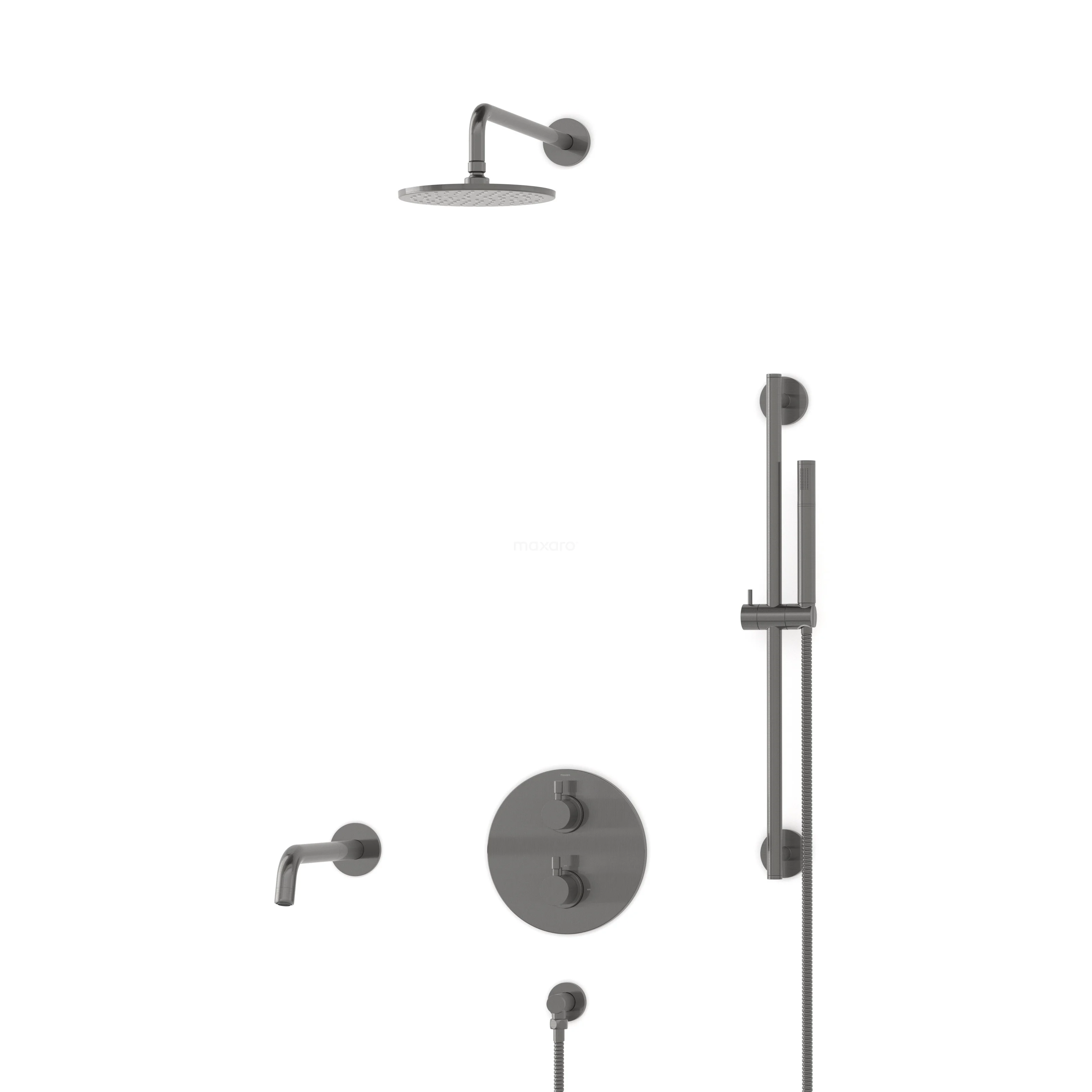Radius Einbau Badewannenarmatur mit Regendusche | Schwarzes Metall Thermostatisch