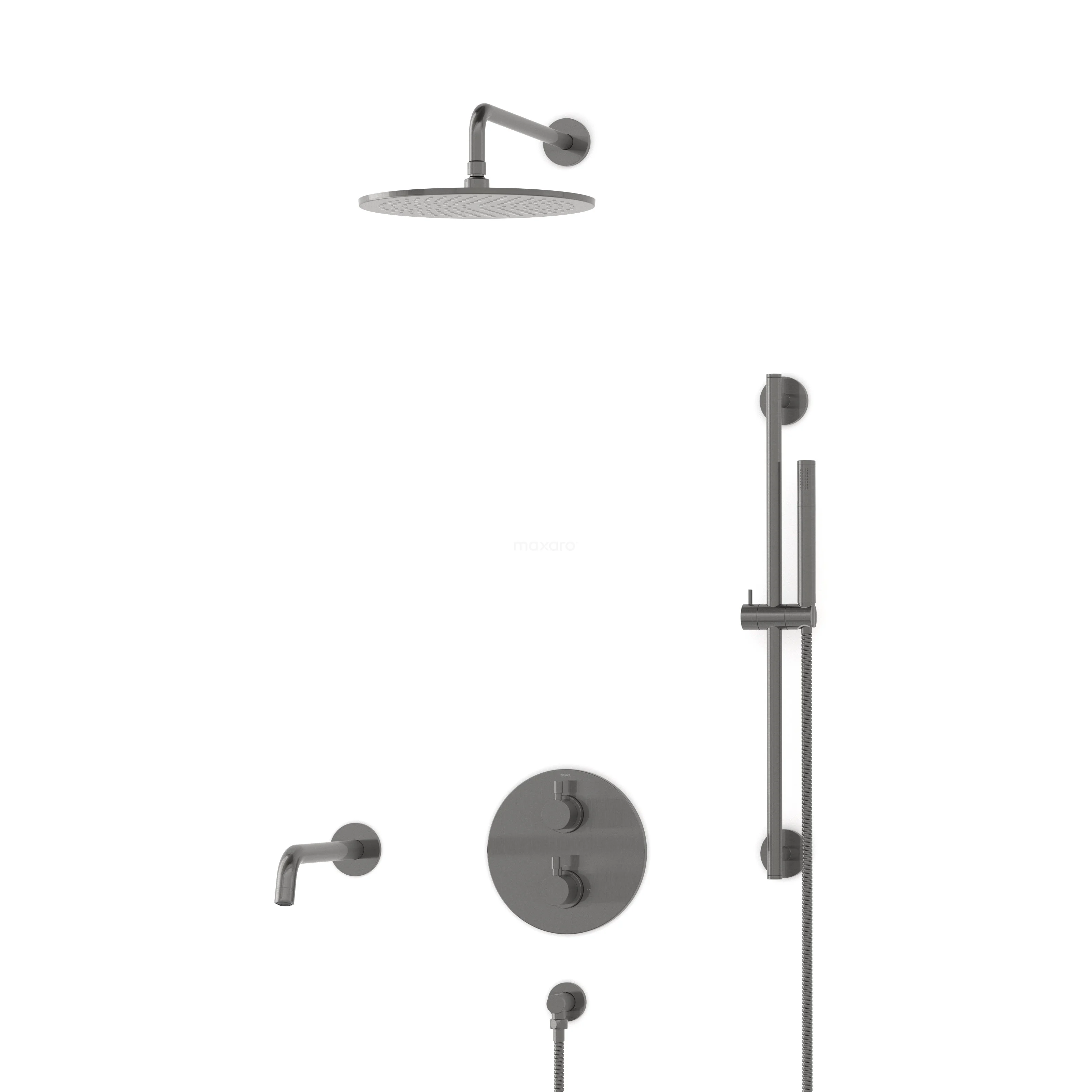 Radius Einbau Badewannenarmatur mit Regendusche | Schwarzes Metall Thermostatisch