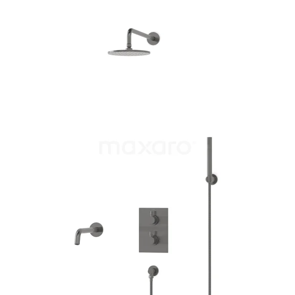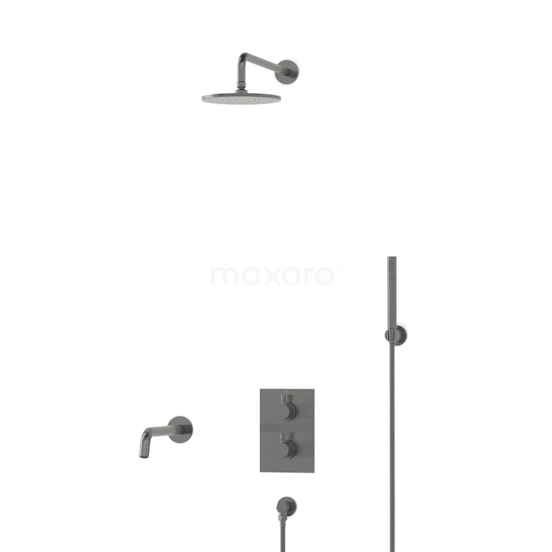 Radius Einbau Badewannenarmatur mit Regendusche | Schwarzes Metall Thermostatisch