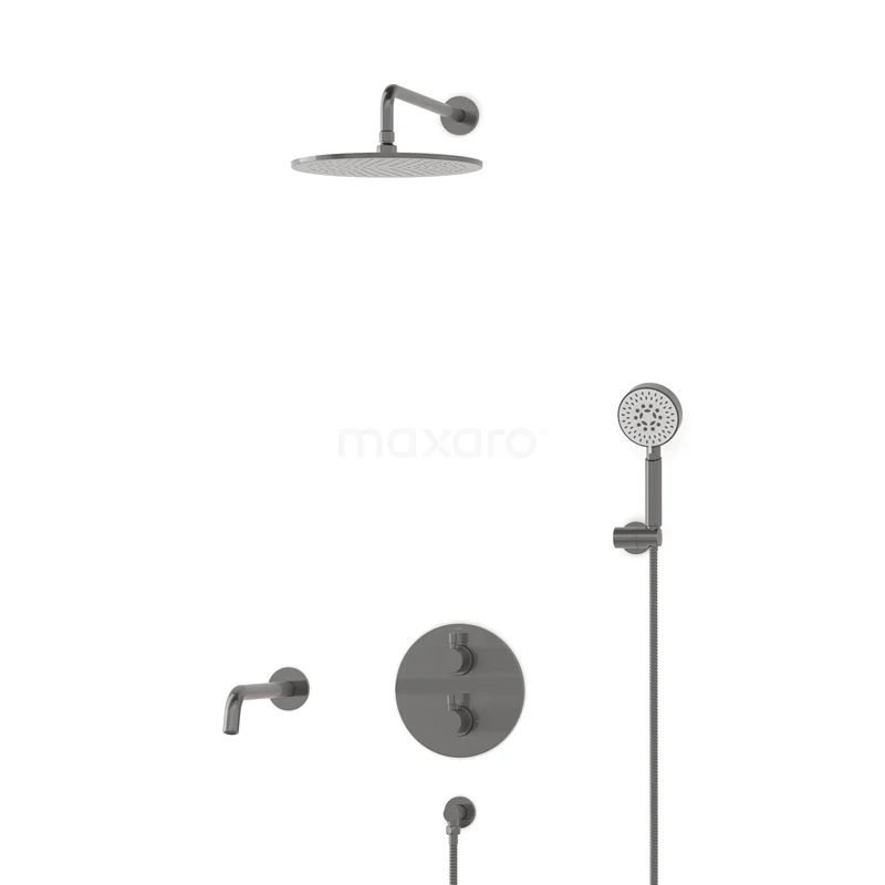 Radius Einbau Badewannenarmatur mit Regendusche | Schwarzes Metall Thermostatisch