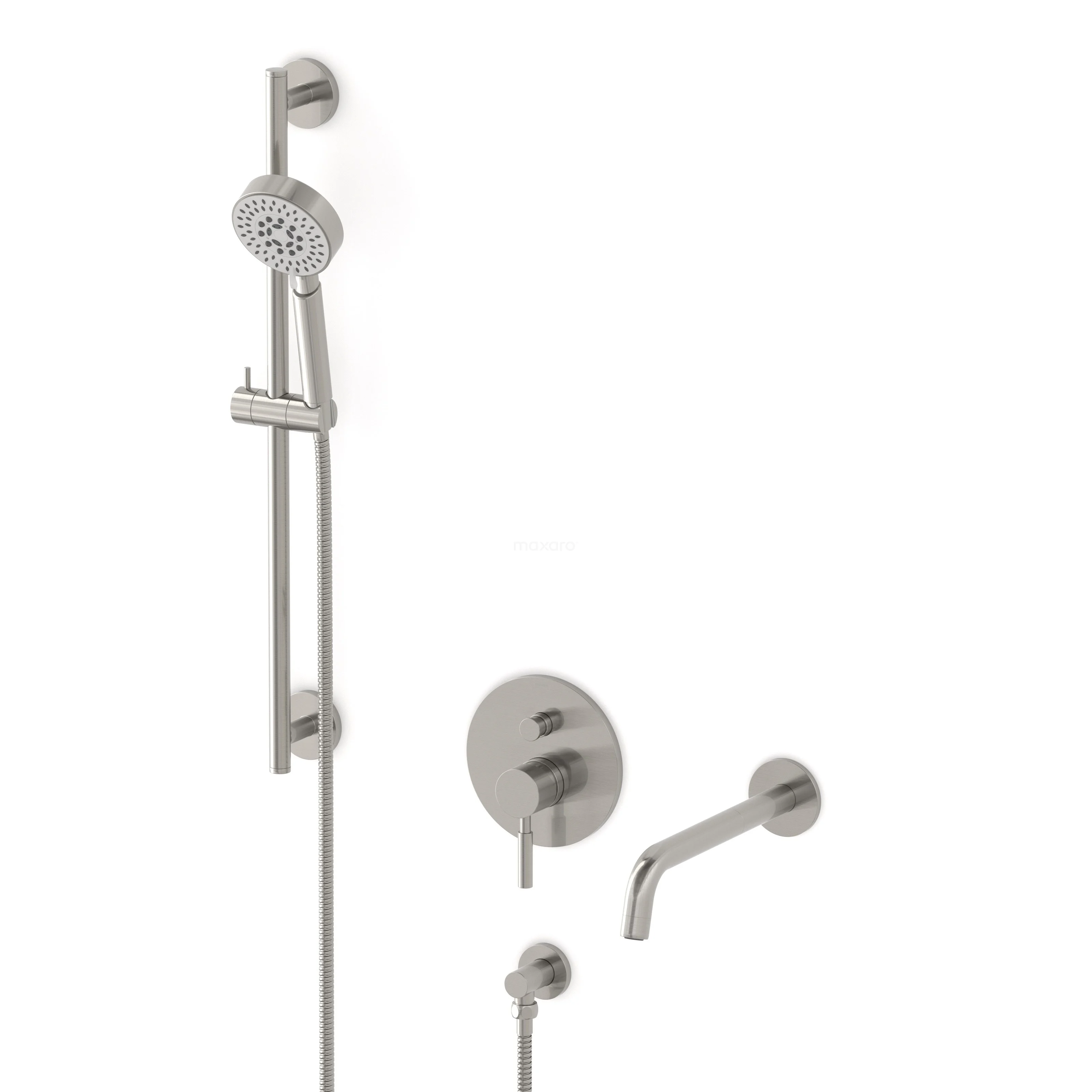Radius Unterputz-Wannenbatterie-Set | Edelstahl Einhebelmischer mit Handbrause 5 Positionen