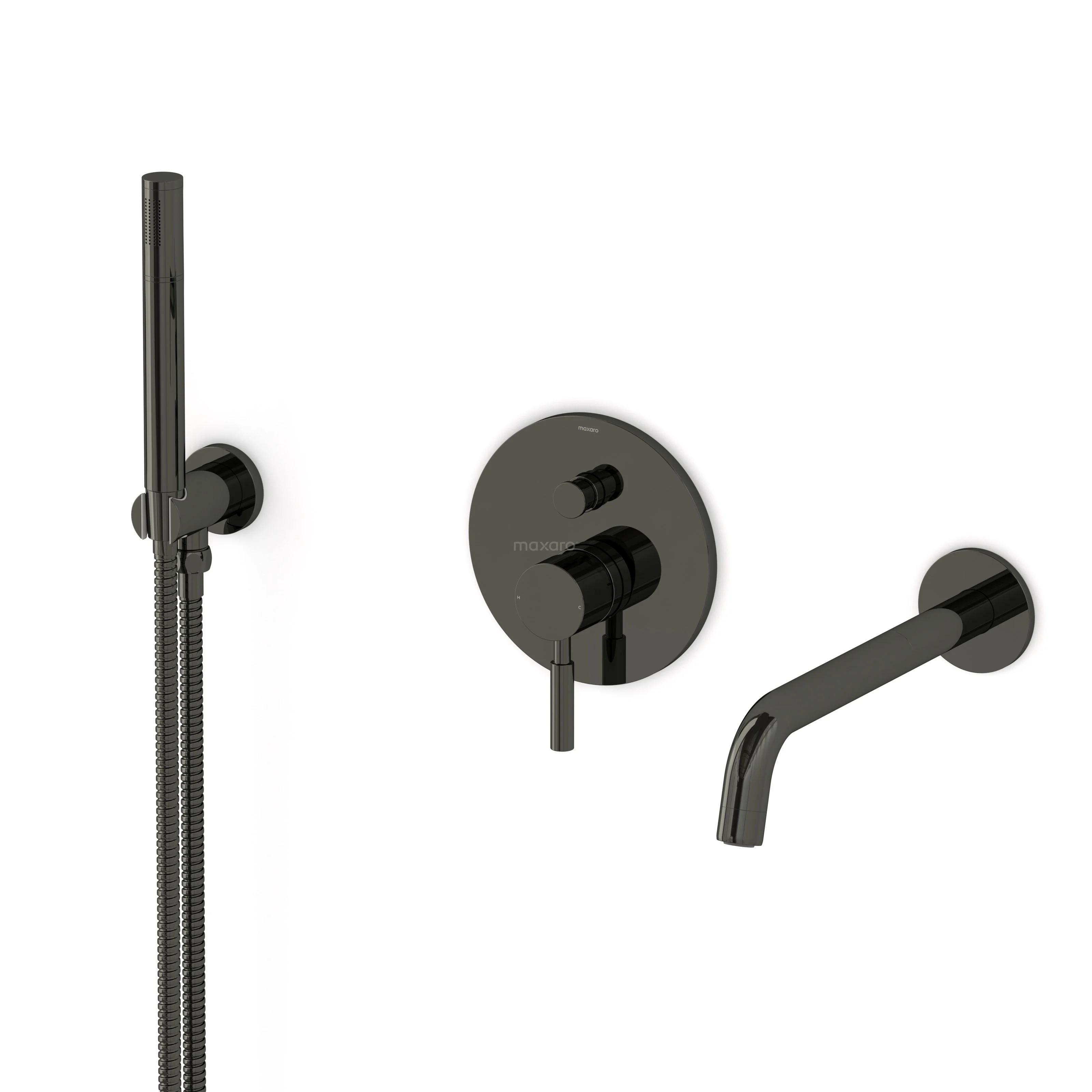 Radius Unterputz-Wannenbatterie-Set | Schwarzchrom Einhebelmischer mit Handbrause 1 Position