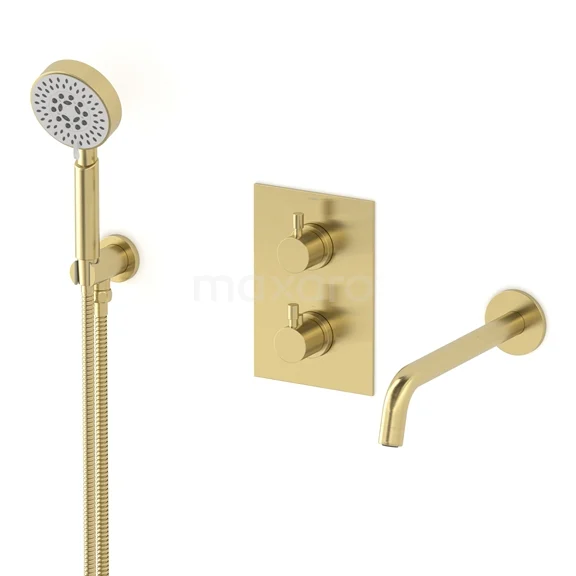 Radius Wanneneinbau-Mischbatterie | Hellgold | Thermostatarmatur mit Handbrause 5 Positionen