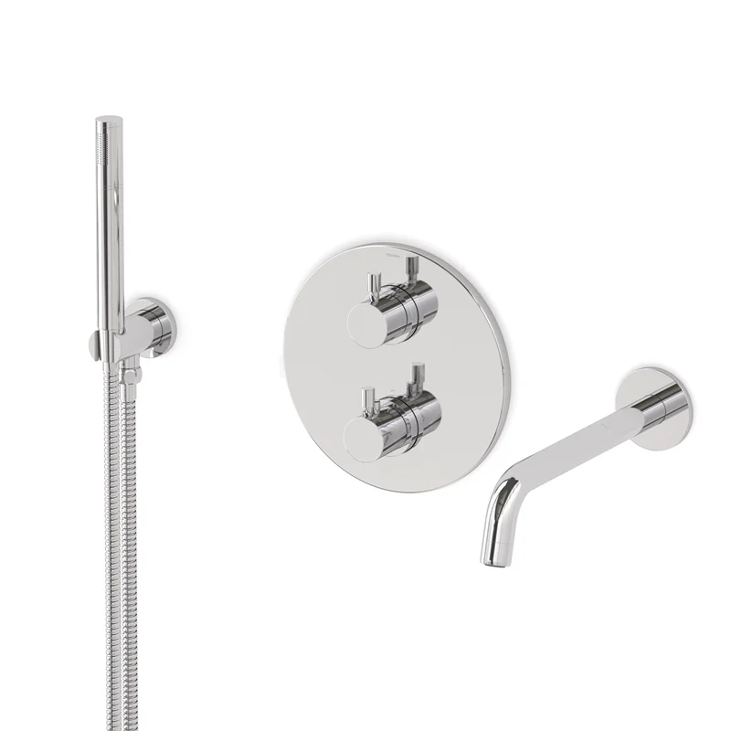 Radius Wanneneinbau-Mischbatterie-Set | Chrom Thermostatarmatur mit Handbrause 1 Position