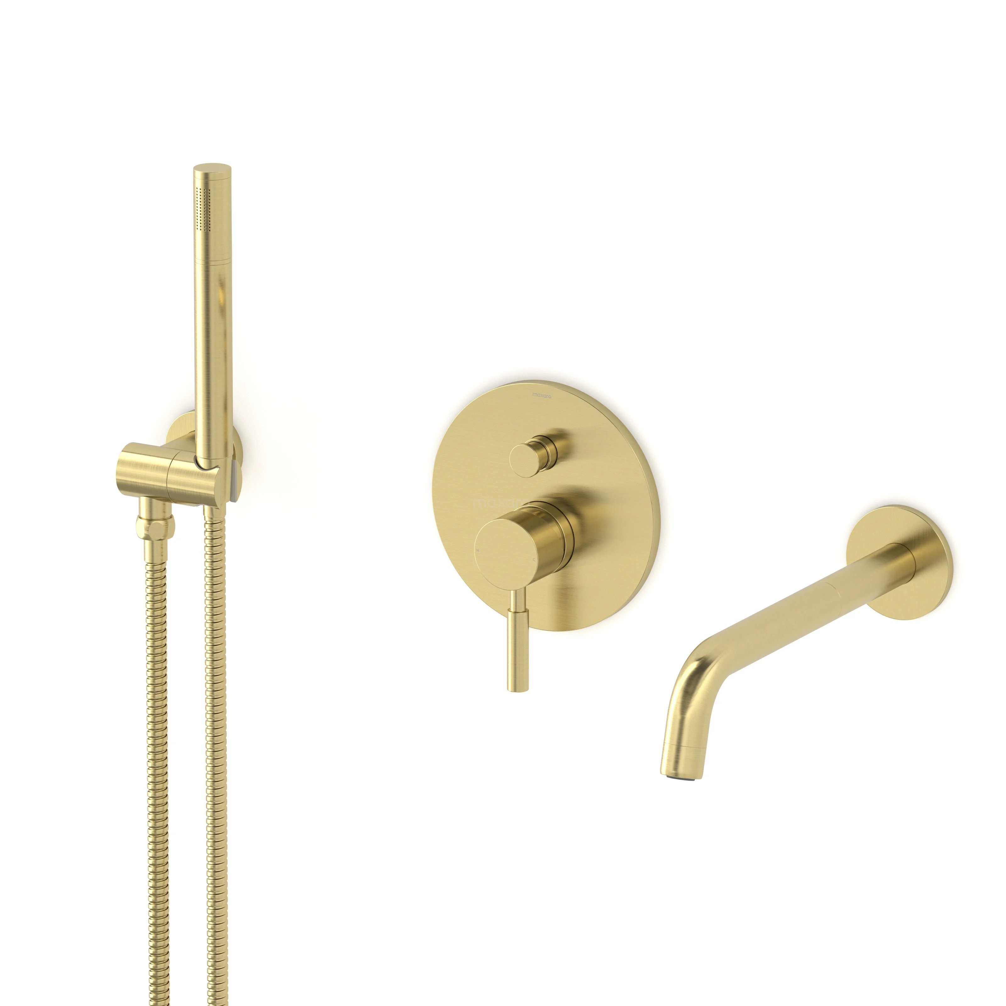 Radius Wanneneinbau-Mischbatterie-Set | Hellgold | Einhebelmischer mit Handbrause 5 Positionen