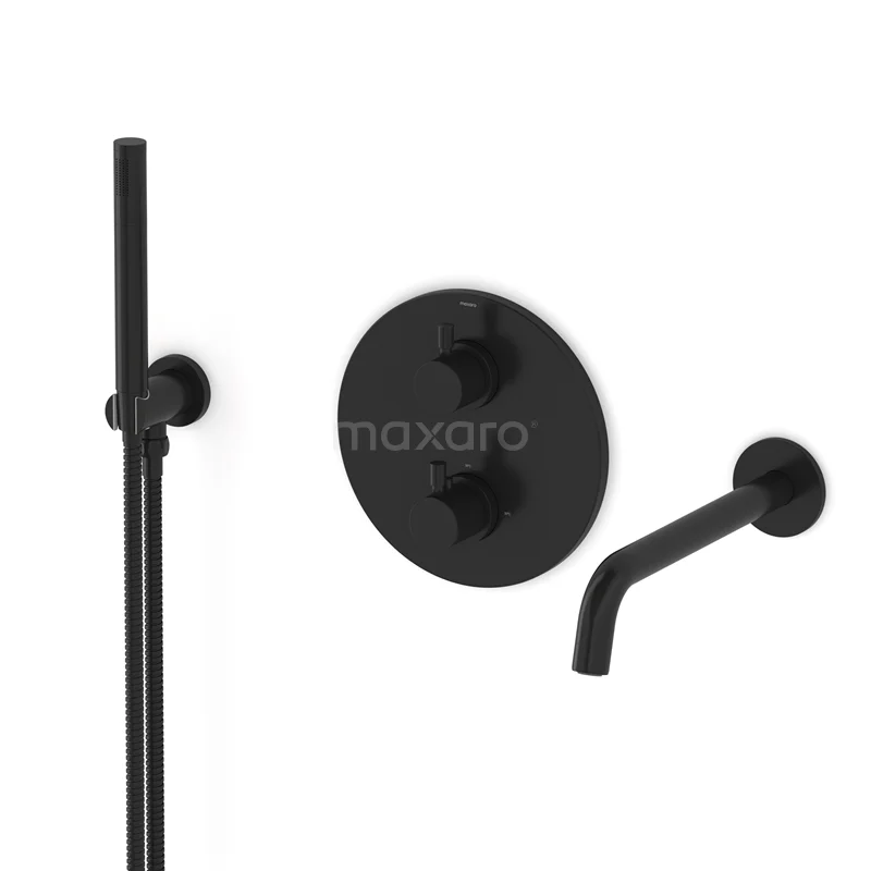 Radius Wanneneinbau-Mischbatterie-Set | Schwarz Thermostatarmatur mit Handbrause 1 Position