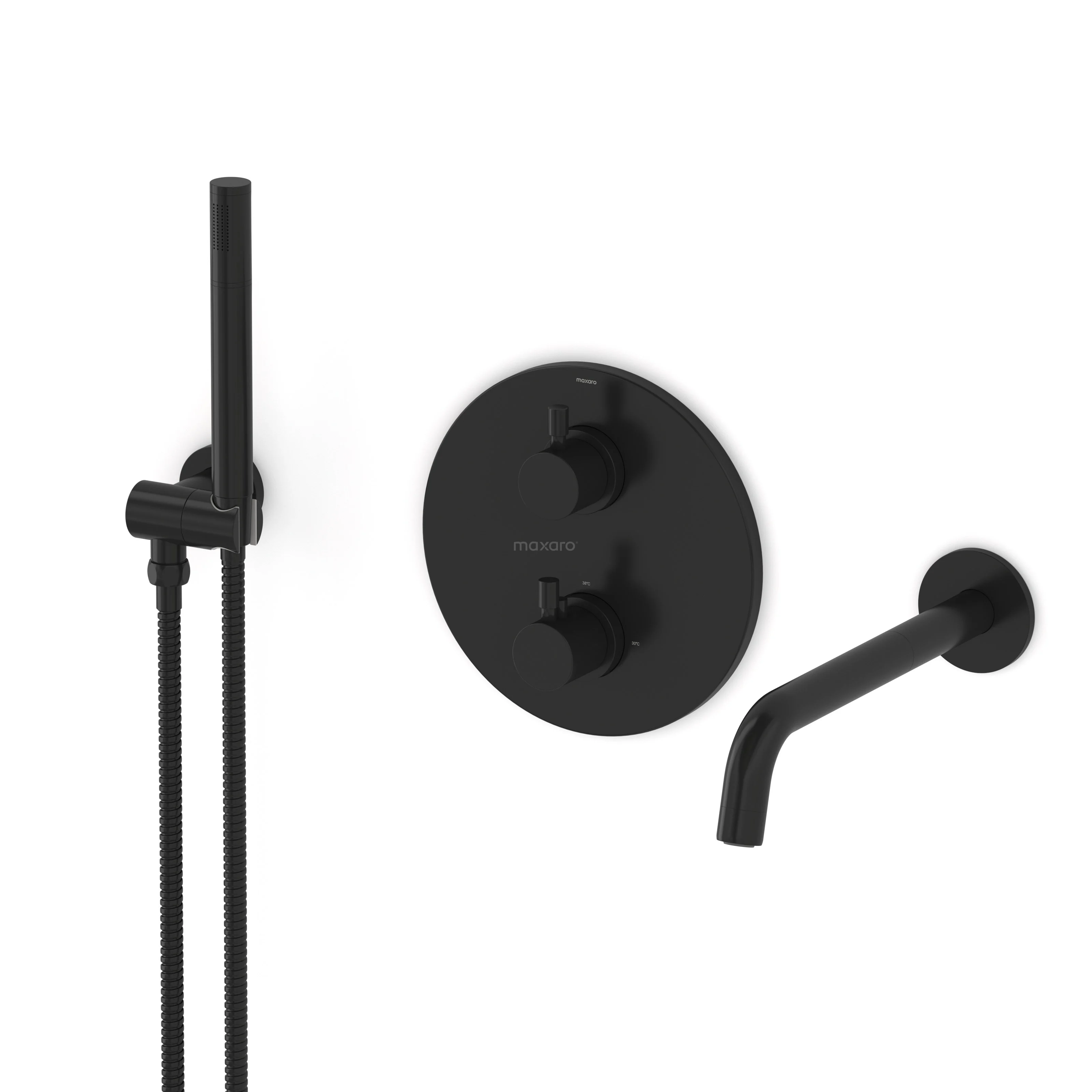 Radius Wanneneinbau-Mischbatterie-Set | Schwarz Thermostatarmatur mit Handbrause 1 Position