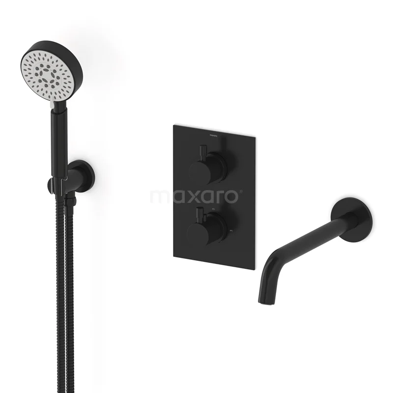 Radius Wanneneinbau-Mischbatterie-Set | Schwarz Thermostatarmatur mit Handbrause 5 Positionen