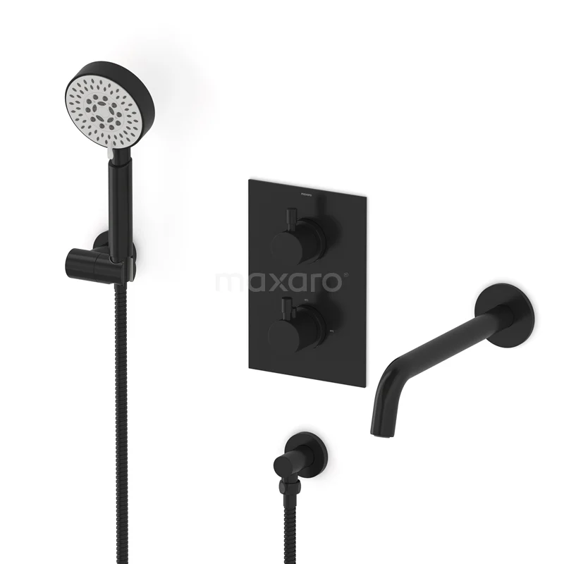 Radius Wanneneinbau-Mischbatterie-Set | Schwarz Thermostatarmatur mit Handbrause 5 Positionen