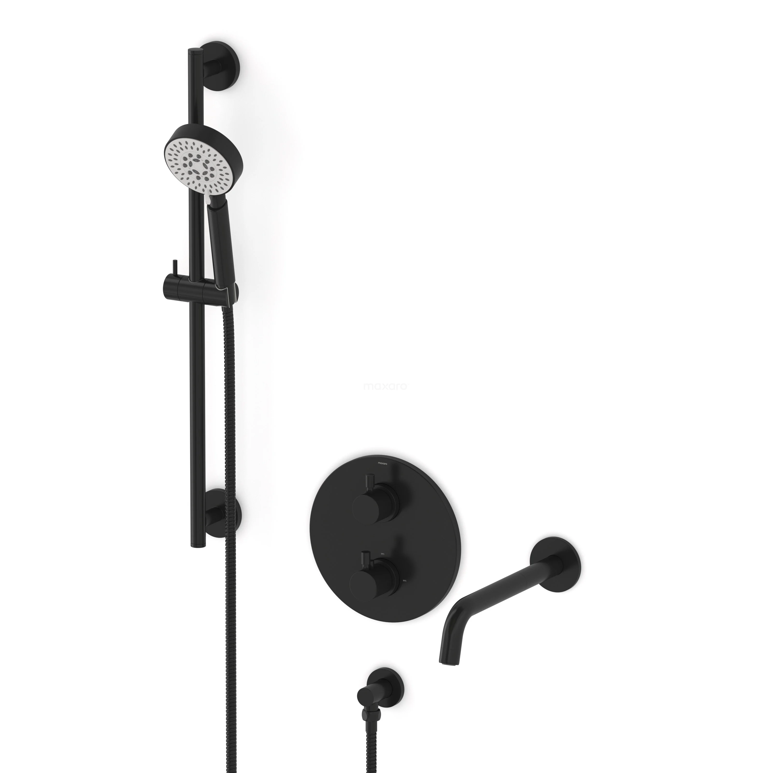 Radius Wanneneinbau-Mischbatterie-Set | Schwarz Thermostatarmatur mit Handbrause 5 Positionen