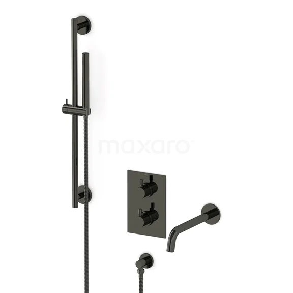 Radius Wanneneinbau-Mischbatterie-Set | Schwarzchrom Thermostatarmatur mit Handbrause 1 Position