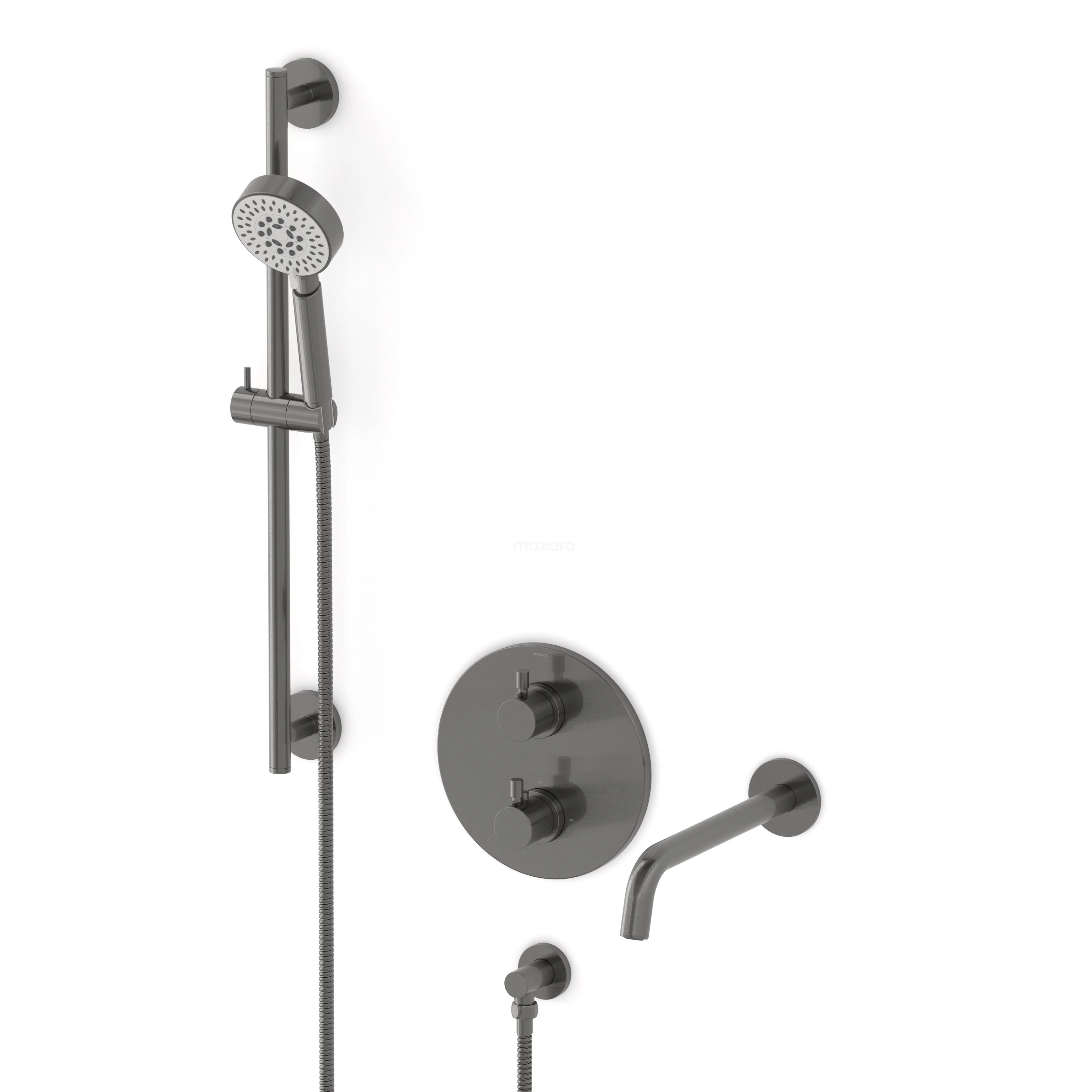 Radius Wanneneinbau-Mischbatterie-Set | Schwarzes Metall Thermostatarmatur mit Handbrause 5 Positionen