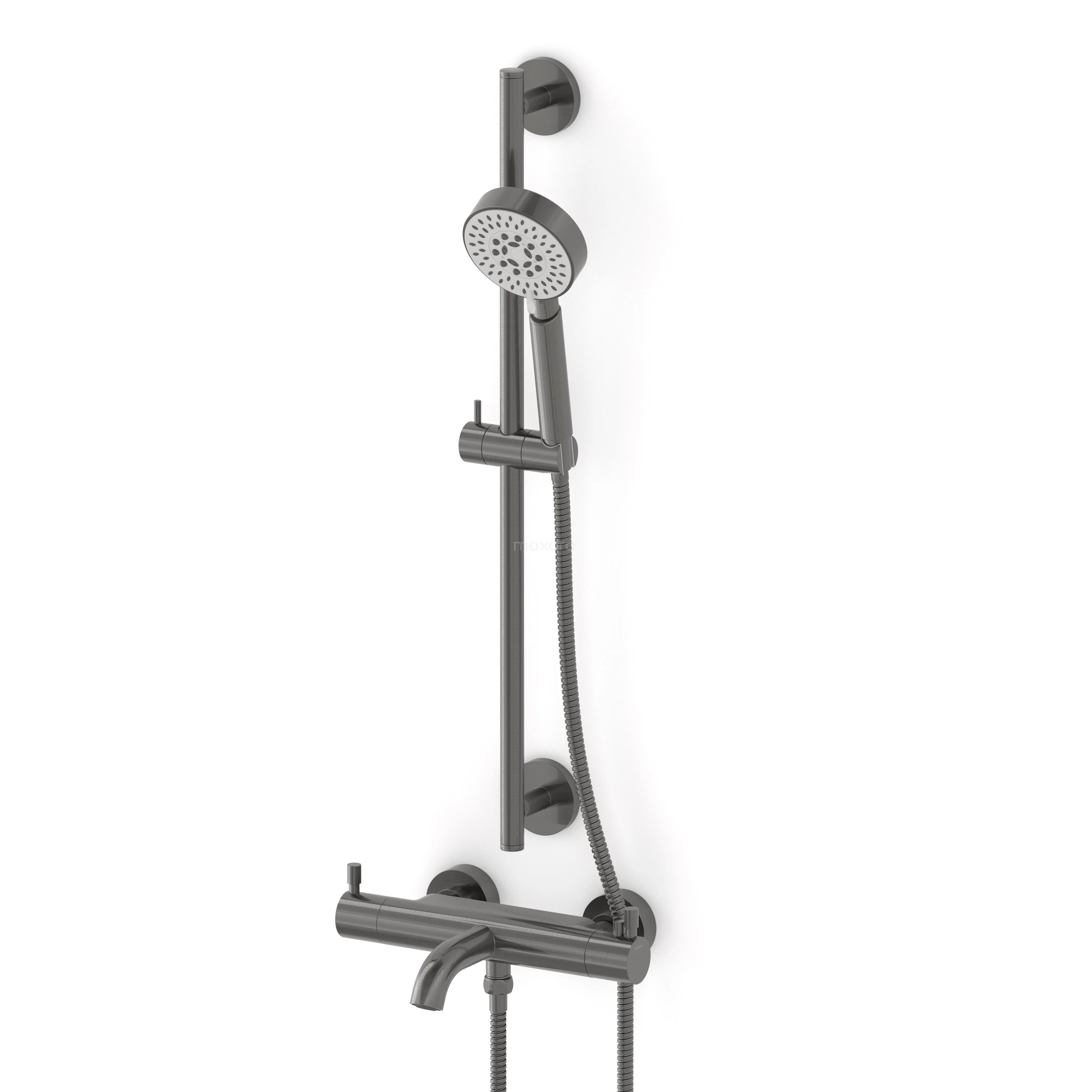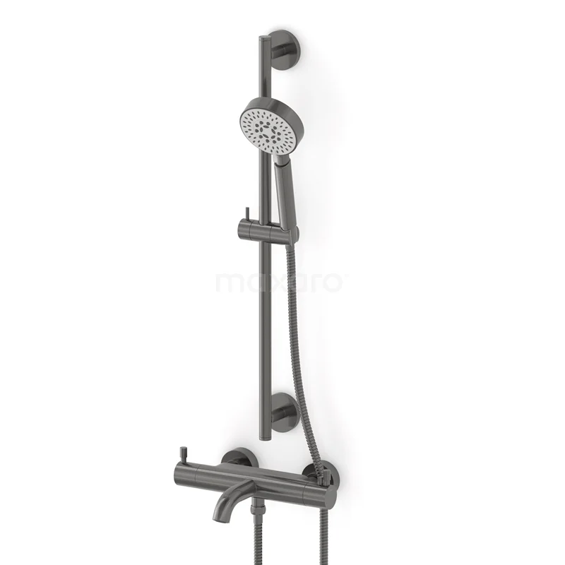 Wannenbatterie-Set Radius | Schwarzes Metall Thermostatarmatur mit Handbrause 5 Positionen