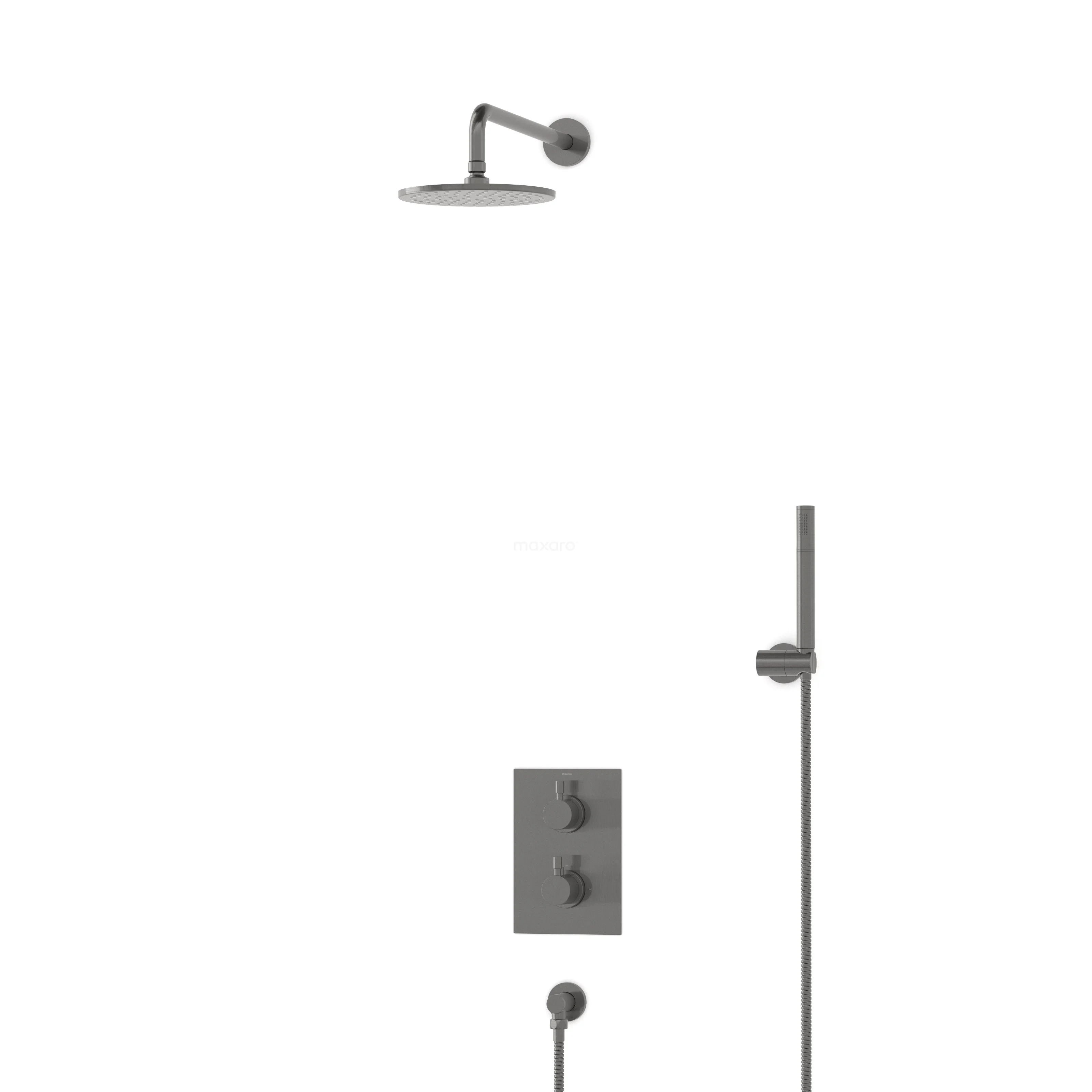 Einbau-Regenbrausegarnitur Radius Schwarz Stahl, Thermostatarmatur, 20cm Kopfbrause, Schwarzes Metall