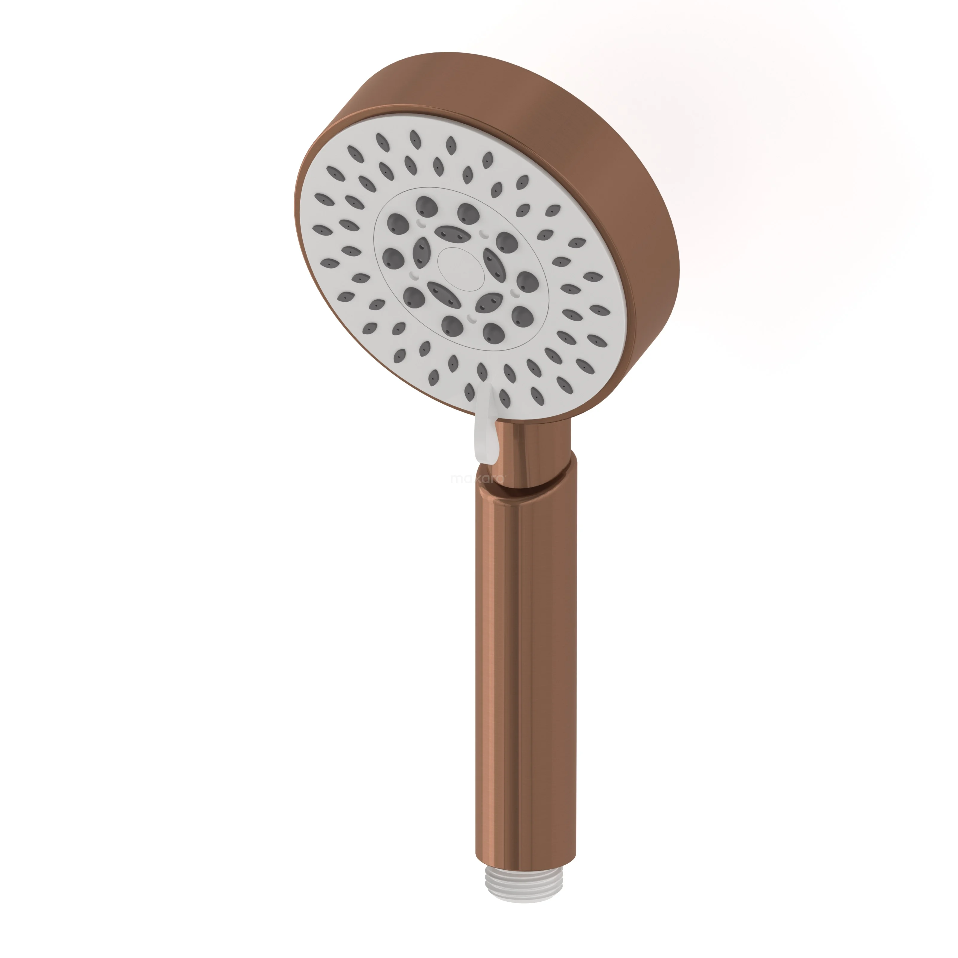 Diese Handbrause aus Kupfer aus der Serie Radius hat ein rundes Design und ist eine stilvolle Ergänzung für Ihr Badezimmer. Sie ist aus Kunststoff gefertigt und verfügt über 5 verschiedene Einstellungen. Hier können Sie zwischen einem Standardstrahl, einem feinen Nebeleffekt oder einer weichen, mittleren und harten Massage wählen. Außerdem ist die Handbrause mit Easy-Clean ausgestattet, mit dem sich die Sprühdüsen leicht von Kalk befreien lassen. Für ein schönes Ganzes kombinieren Sie die Handbrause mit einem passenden Handbrausenhalter von Maxaro.