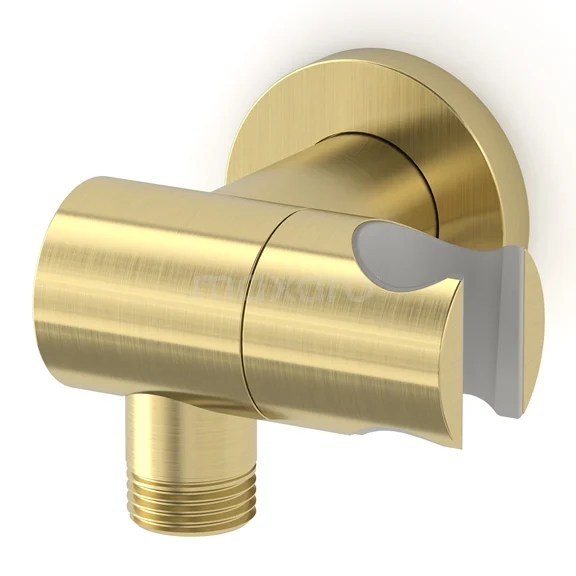 Dieser schwenkbare Radius-Handbrausehalter mit Wandanschluss ist für eine Handbrause geeignet. Dieses hellgoldene Modell hat ein elegantes, rundes Design und ist eine stilvolle Ergänzung für Ihr Badezimmer. Kombinieren Sie die Halterung mit einer passenden Armatur und Handbrause aus der gleichen Serie, um ein stimmiges Gesamtbild zu erhalten.