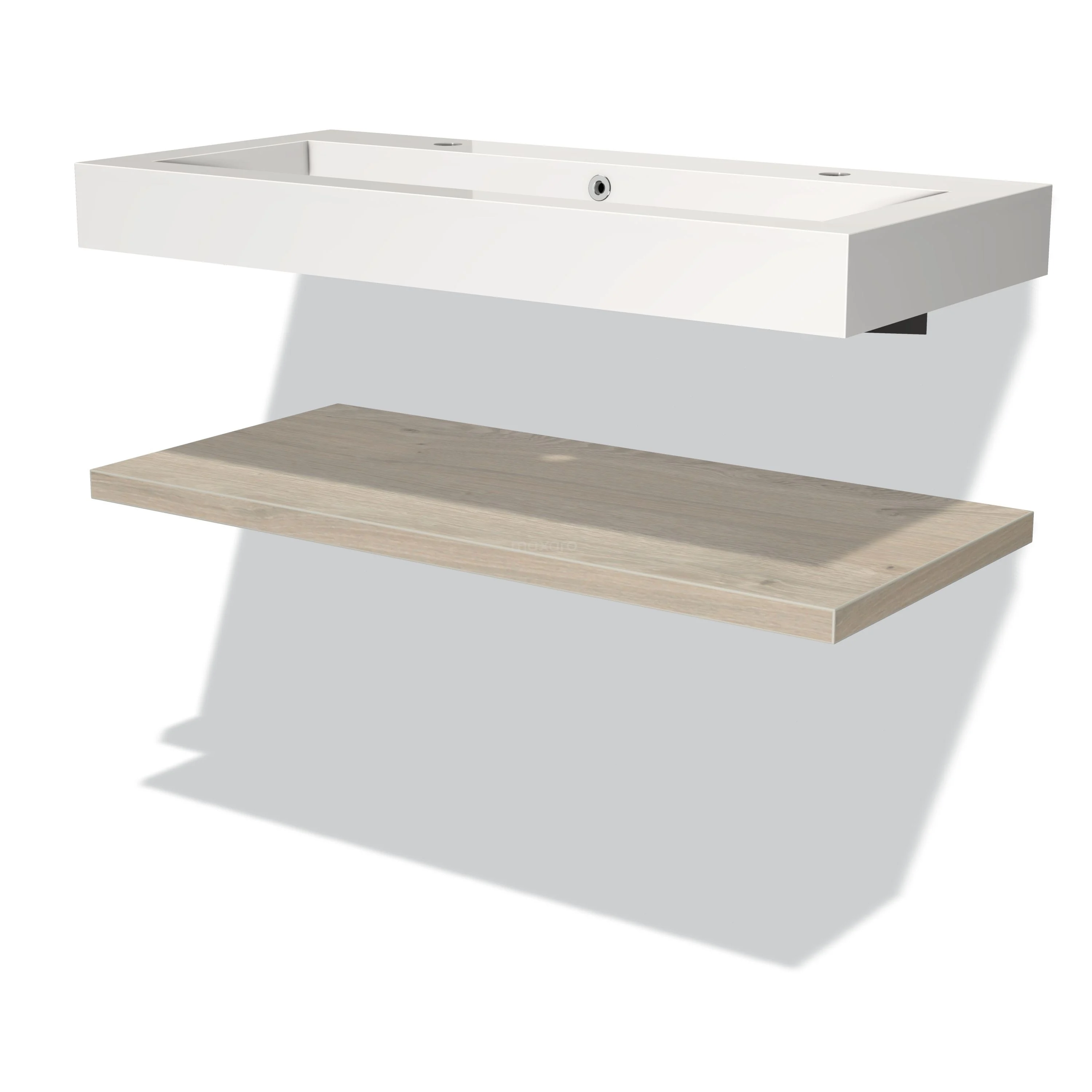 Stylisches Design Dank seines schönen Designs wird dieses Badmöbel zum Blickfang in Ihrem Badezimmer. Die Waschtischplatte ist in hellgrauer Eiche ausgeführt. Diese Eichenoptik hat ein natürliches Aussehen und ist eine stimmungsvolle Ergänzung für Ihr Badezimmerinterieur. Außerdem setzt das weiße Waschbecken einen frischen Akzent.