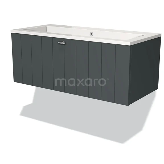 Badmöbel 100cm Modulo Dunkelgrau 1 Schublade Lattenrost Waschbecken Mineralguss