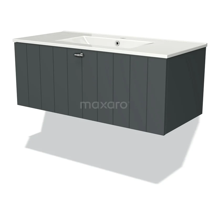Badmöbel 100cm Modulo Dunkelgrau 1 Schubladen-Lamellenwaschbecken Keramik