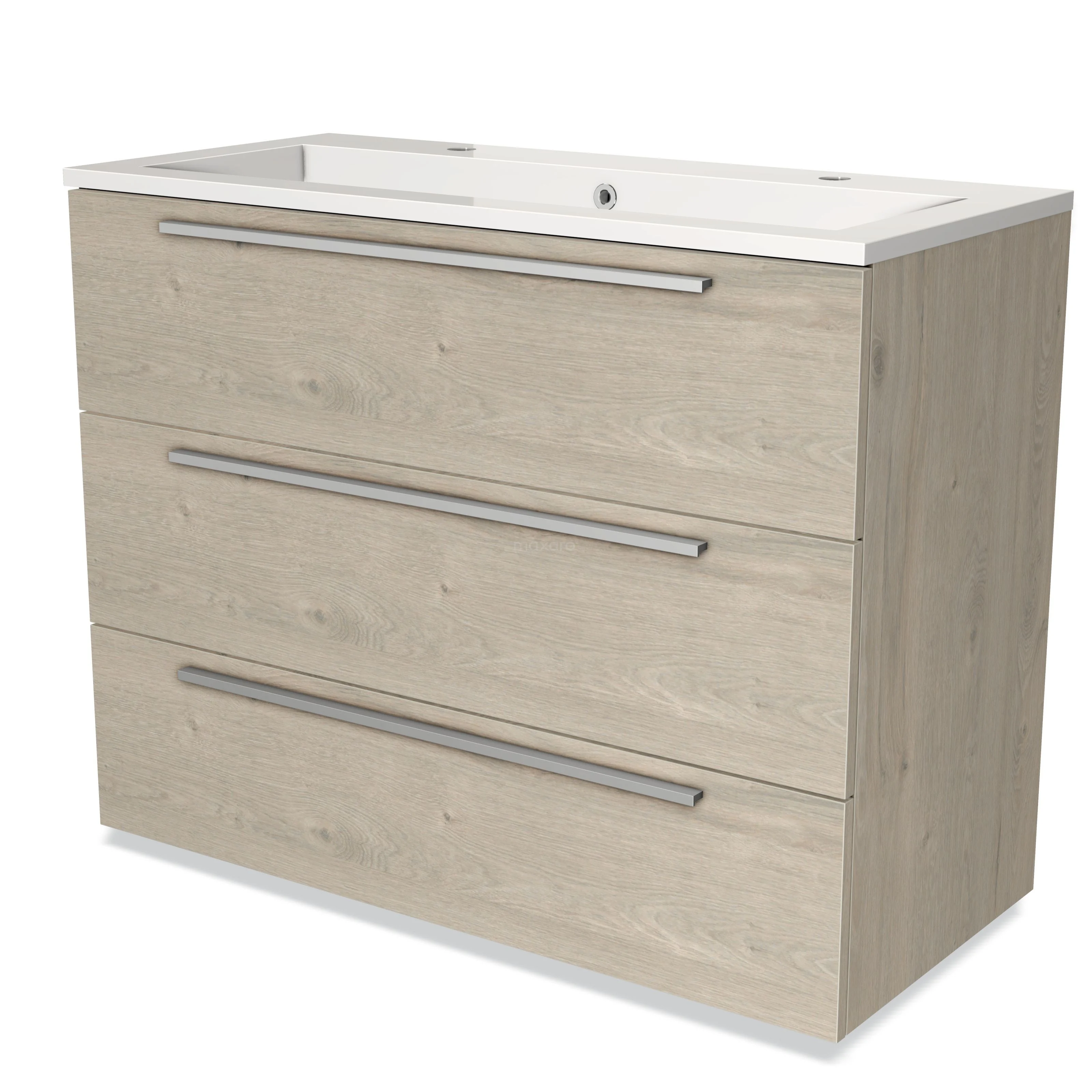 Modulo Waschtische | 100 cm Hellgraue Eiche Flach front Mineralguss 3 Schubladen