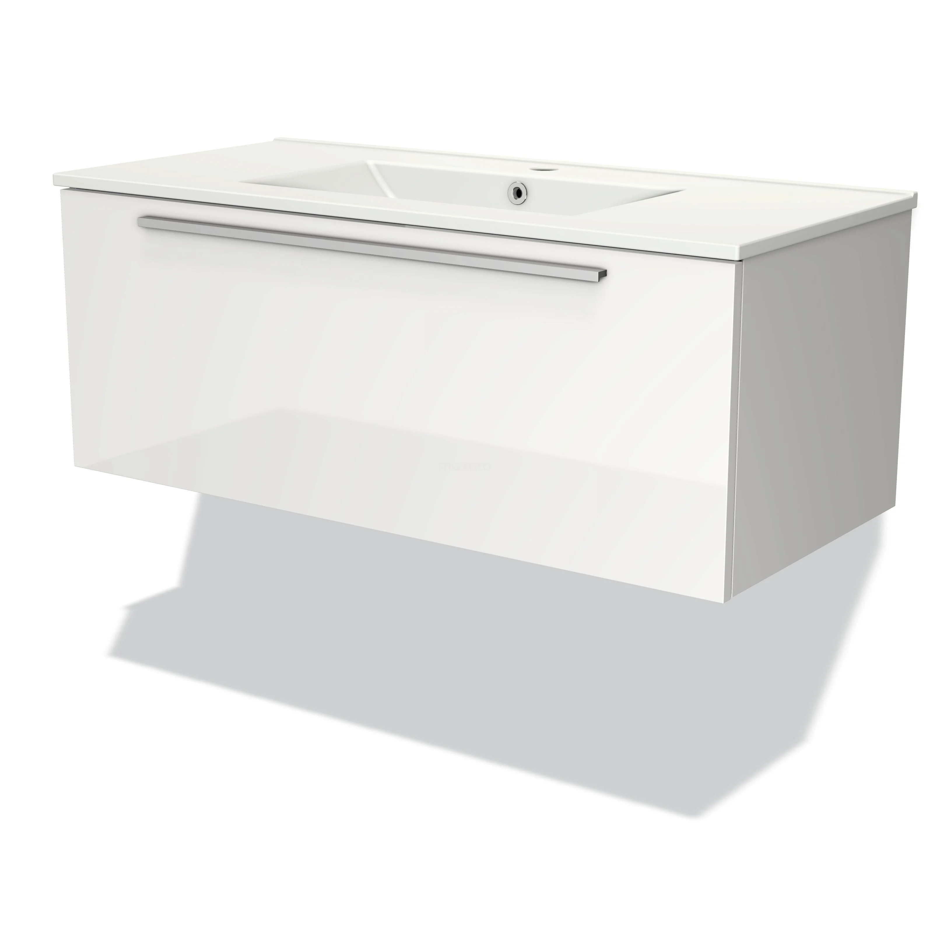 Badmöbel 100cm Modulo Hochglanz Weiß 1 Schublade Flaches Waschbecken Keramik