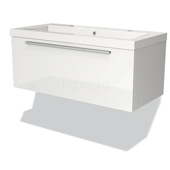 Badmöbel 100cm Modulo Hochglanz Weiß 1 Schublade Flaches Waschbecken Mineralguss