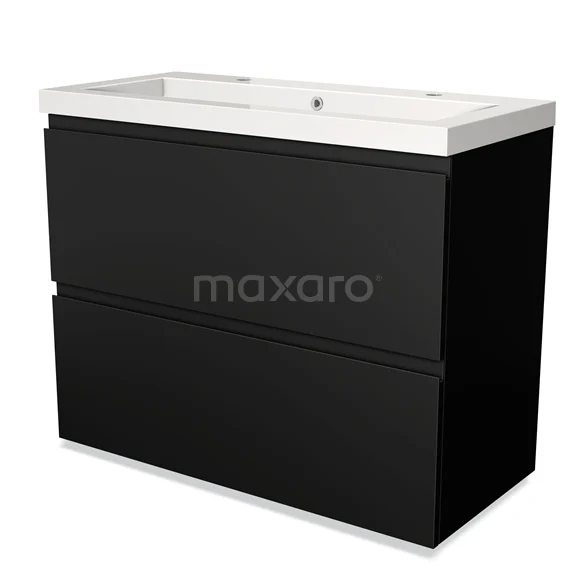 Badmöbel 100cm Modulo Matt Schwarz 2 hohe Schubladen Griffloses Waschbecken Mineralguss