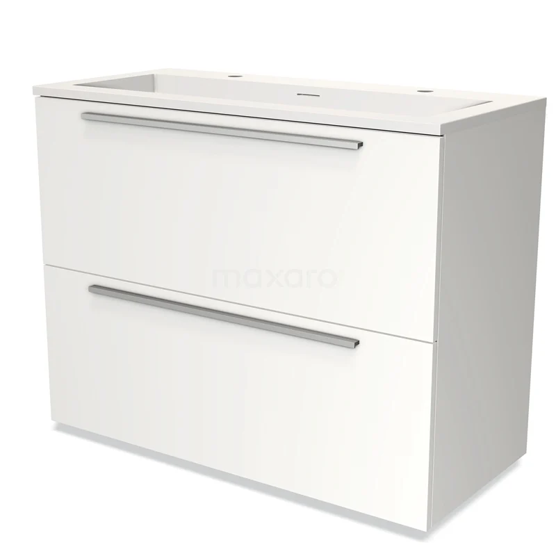 Badmöbel 100cm Modulo Matt Weiß 2 hohe Schubladen Flaches Solid Surface Waschbecken