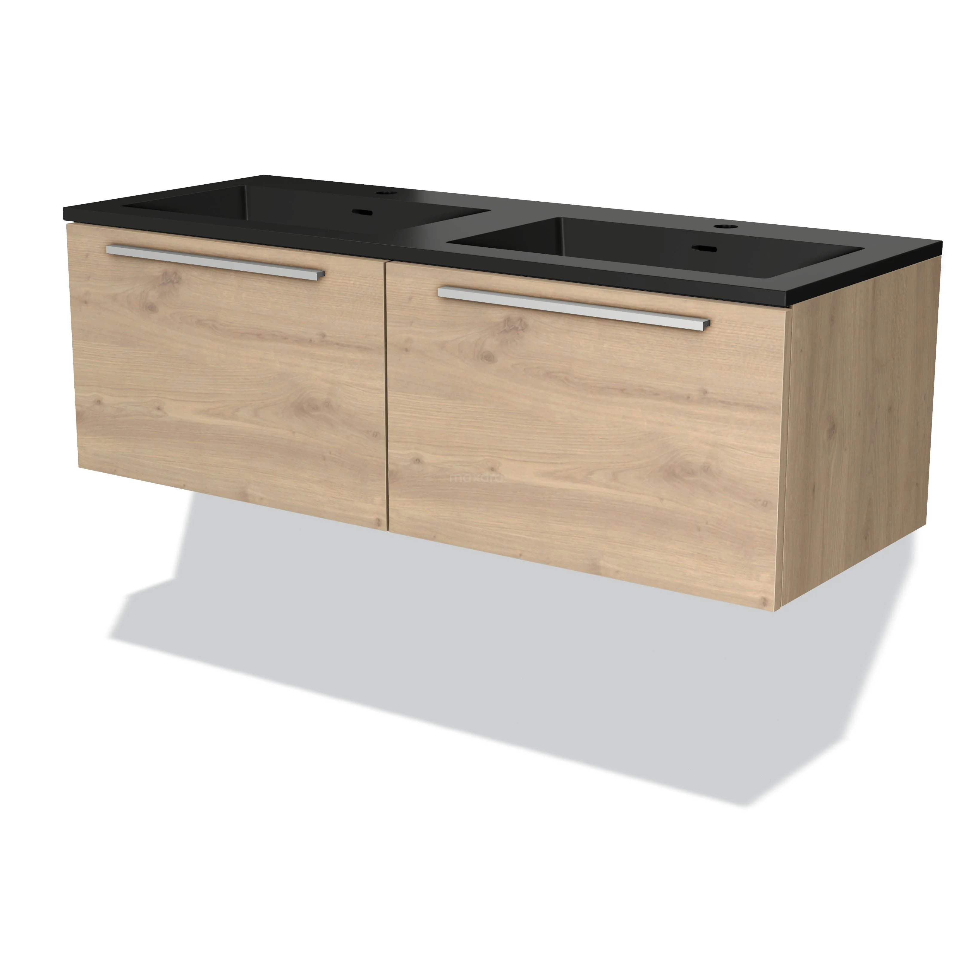 Modulo Waschtische | 120 cm Hellbraune Eiche Flach front Quarz 2 nebeneinanderliegende Schubladen