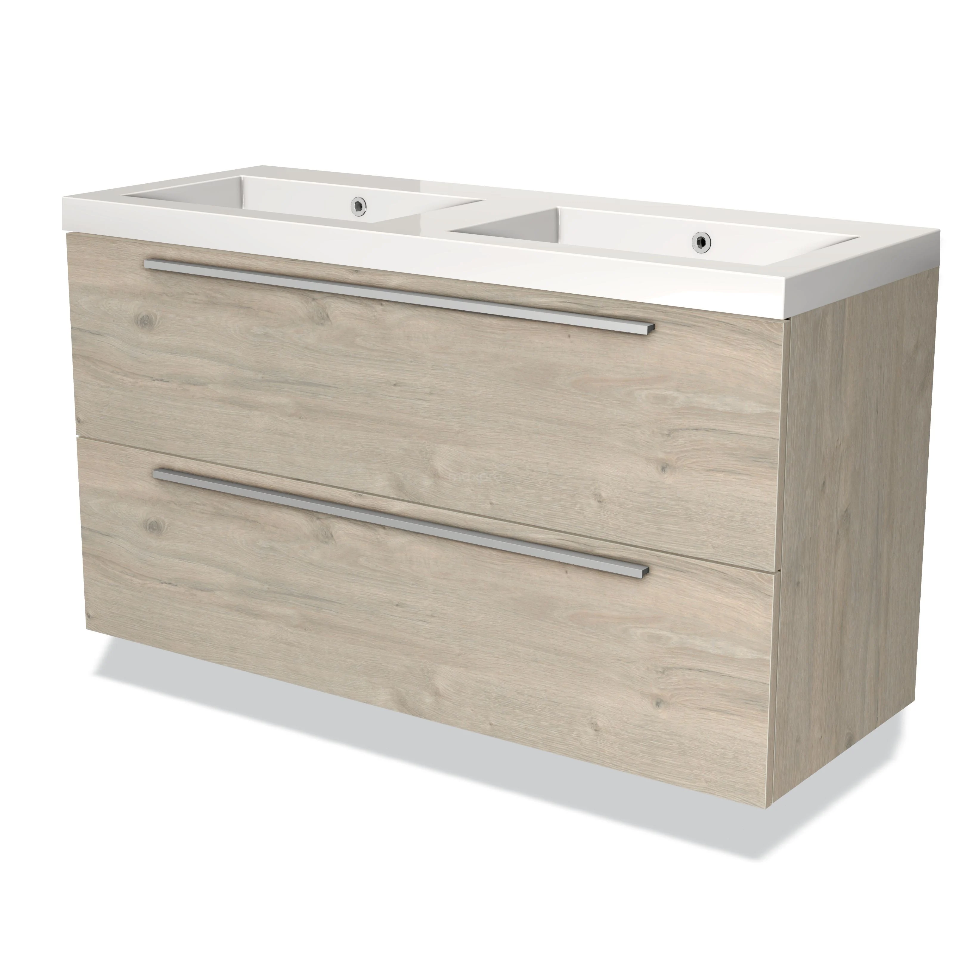 Badmöbel 120cm Modulo hellgraue Eiche 2 Schubladen Flaches Waschbecken Mineralguss