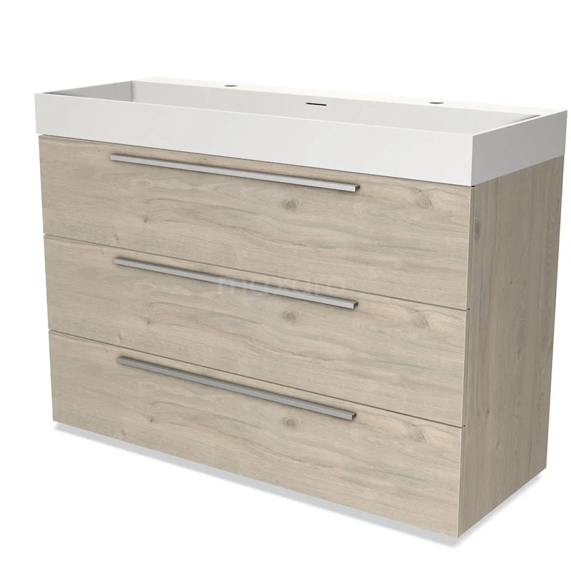 Modulo Waschtische | 120 cm Hellgraue Eiche Flach front Solid Surface 3 Schubladen