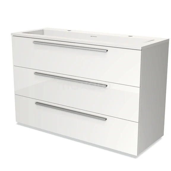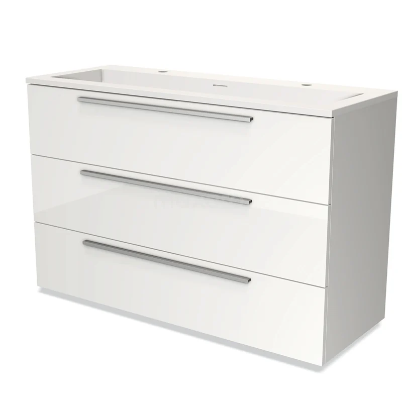 Modulo Waschtische | 120 cm Hochglanz Weiß Flach front Solid Surface 3 Schubladen
