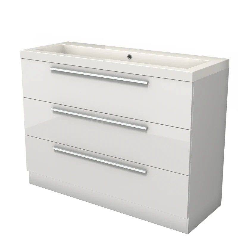 Modulo Waschtische | 120 cm Hochglanz Weiß Flach front Mineralguss 3 stehende Schubladen