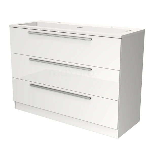 Modulo Waschtische | 120 cm Hochglanz Weiß Flach front Solid Surface 3 stehende Schubladen