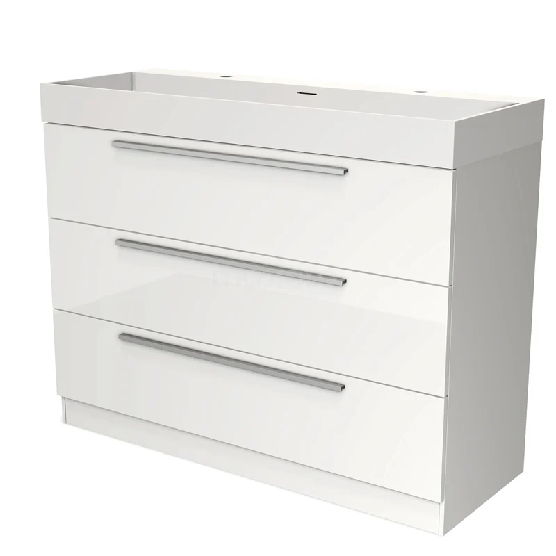 Modulo Waschtische | 120 cm Hochglanz Weiß Flach front Solid Surface 3 stehende Schubladen