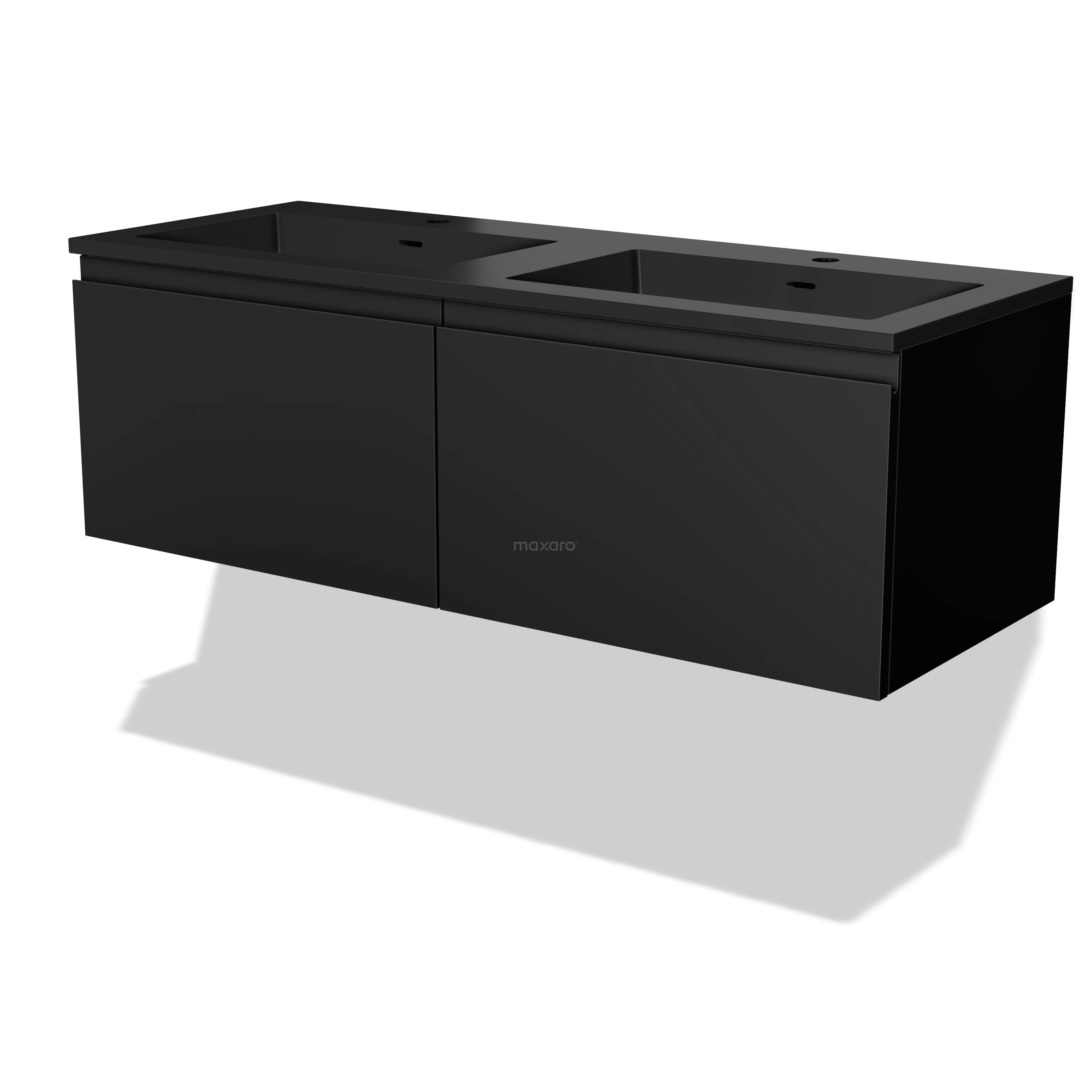 Modulo Waschtische | 120 cm Matt Schwarz Grifflos front Quarz 2 nebeneinanderliegende Schubladen