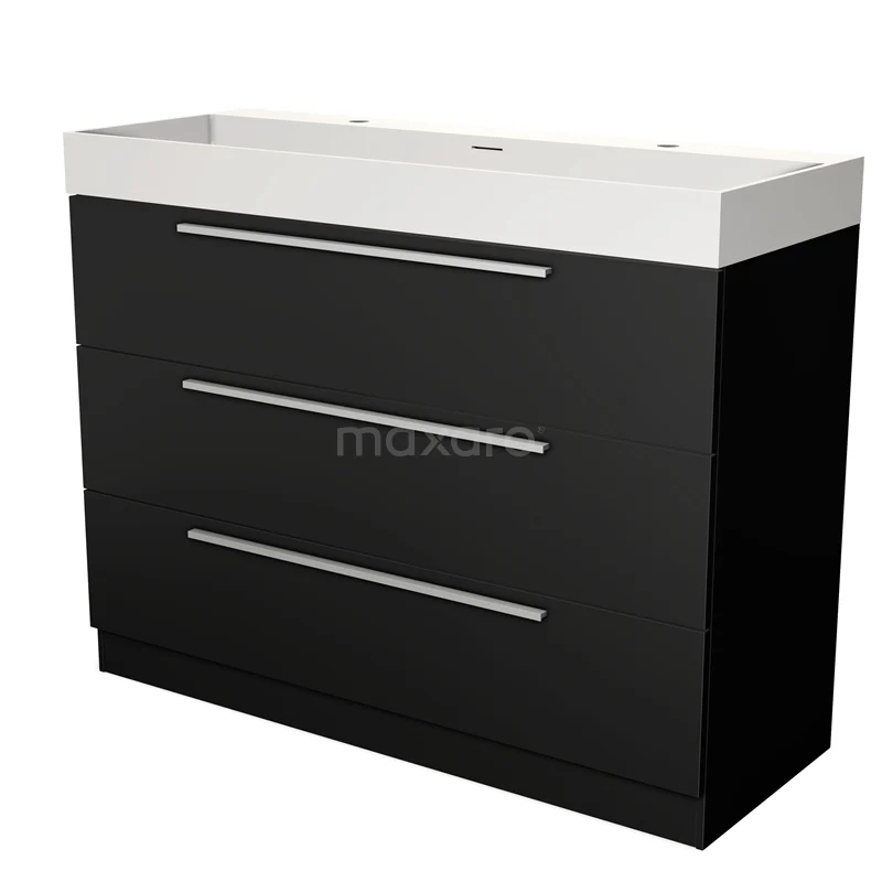 Badmöbel 120cm Modulo Matt Schwarz 3 Schubladen Stehend Flaches Waschbecken Solid Surface