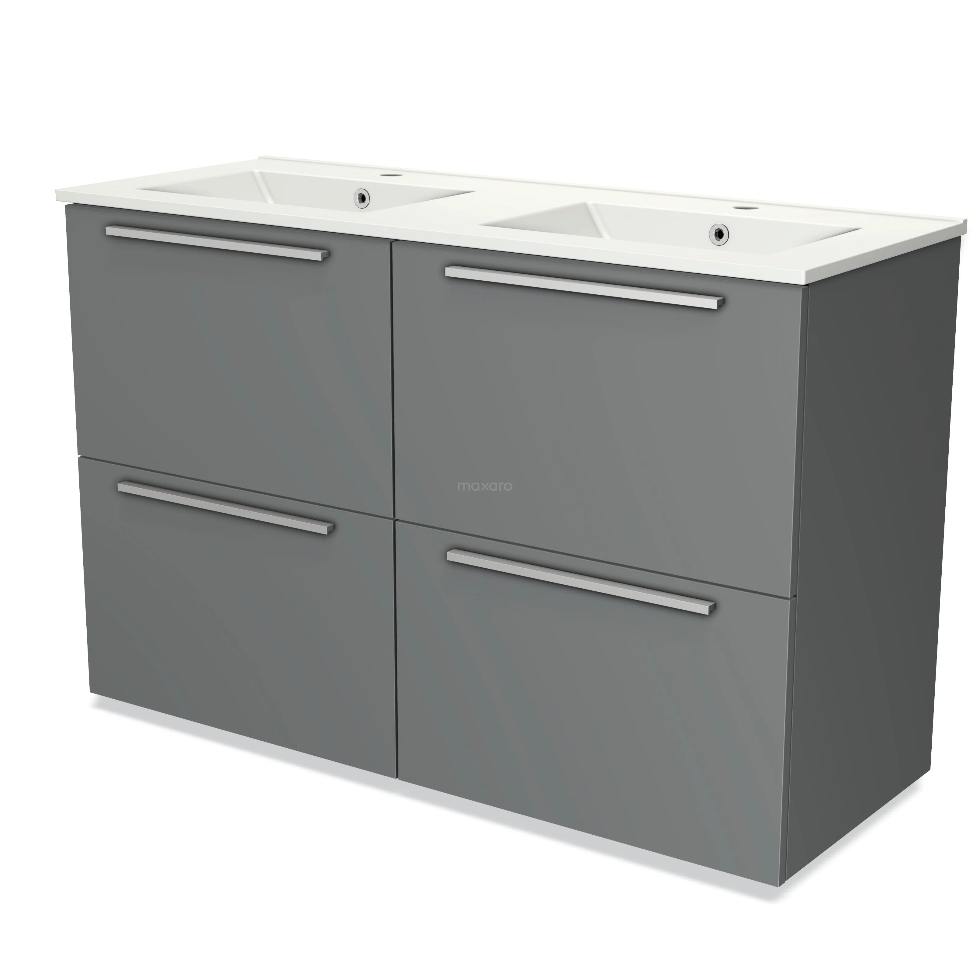 Badmöbel 120cm Modulo Mittelgrau 4 hohe Schubladen Flaches Waschbecken aus Keramik