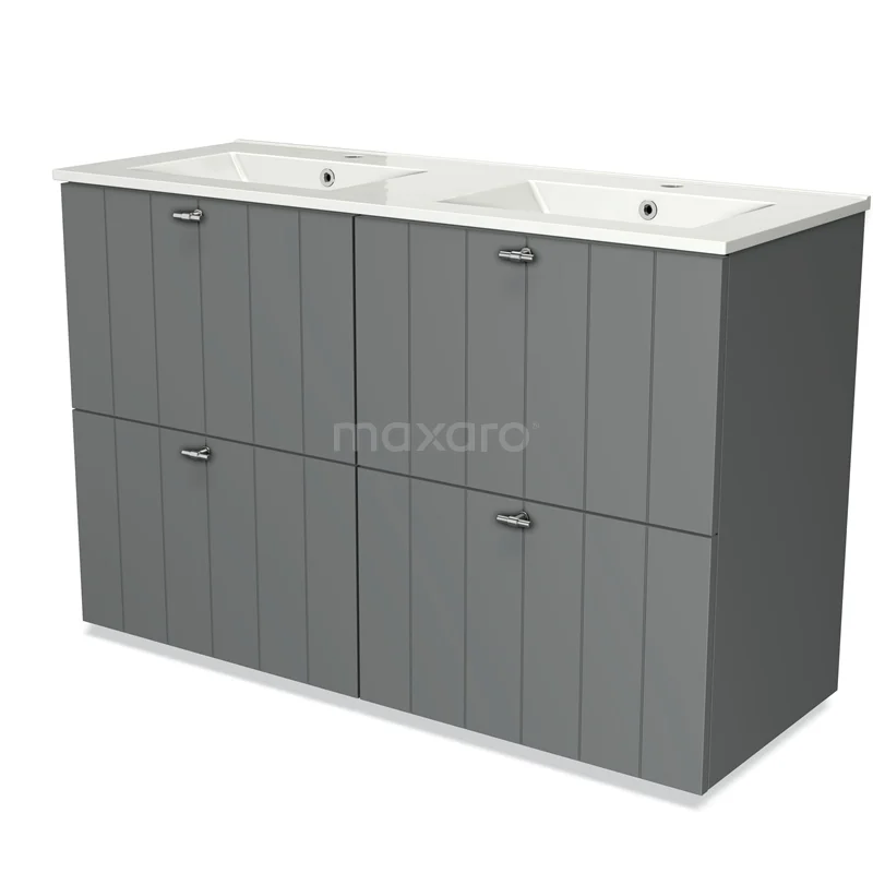 Badmöbel 120cm Modulo Mittelgrau 4 hohe Schubladen Lamellenwaschbecken Keramik