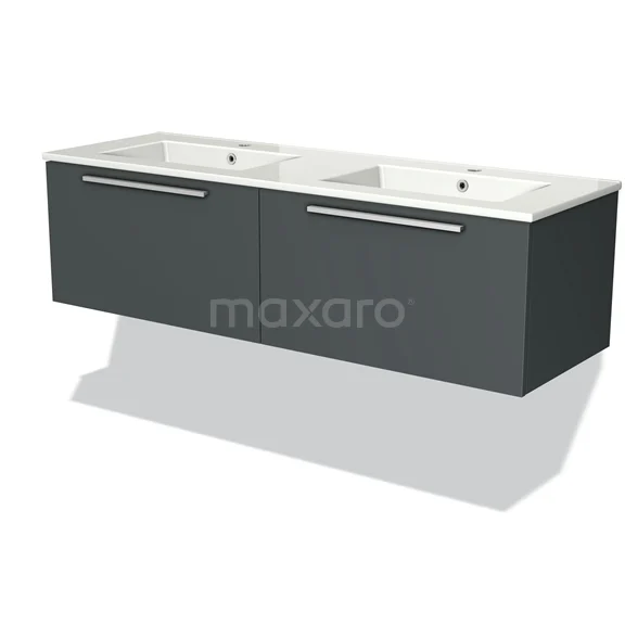 Badmöbel 140cm Modulo Dunkelgrau 2 Schubladen Flaches Waschbecken aus Keramik