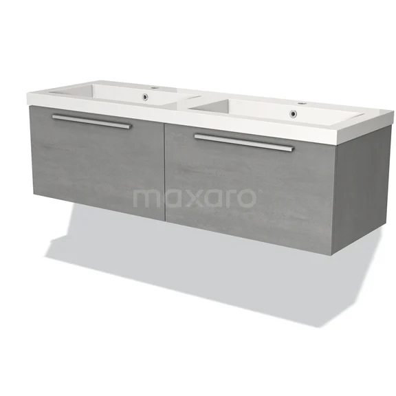 Badmöbel 140cm Modulo hellgrauer Beton 2 Schubladen Flaches Waschbecken Mineralguss