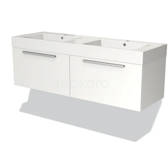 Badmöbel 140cm Modulo Matt Weiß 2 Schubladen Flaches Waschbecken Mineralguss
