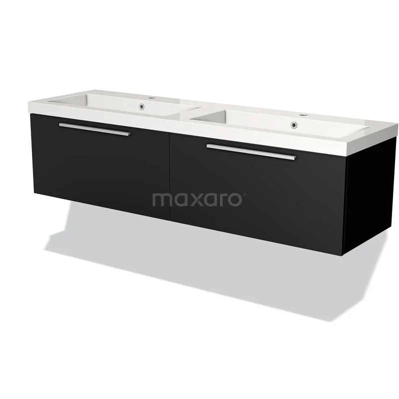 Badmöbel 160cm Modulo Matt Schwarz 2 Schubladen Flaches Waschbecken Mineralguss