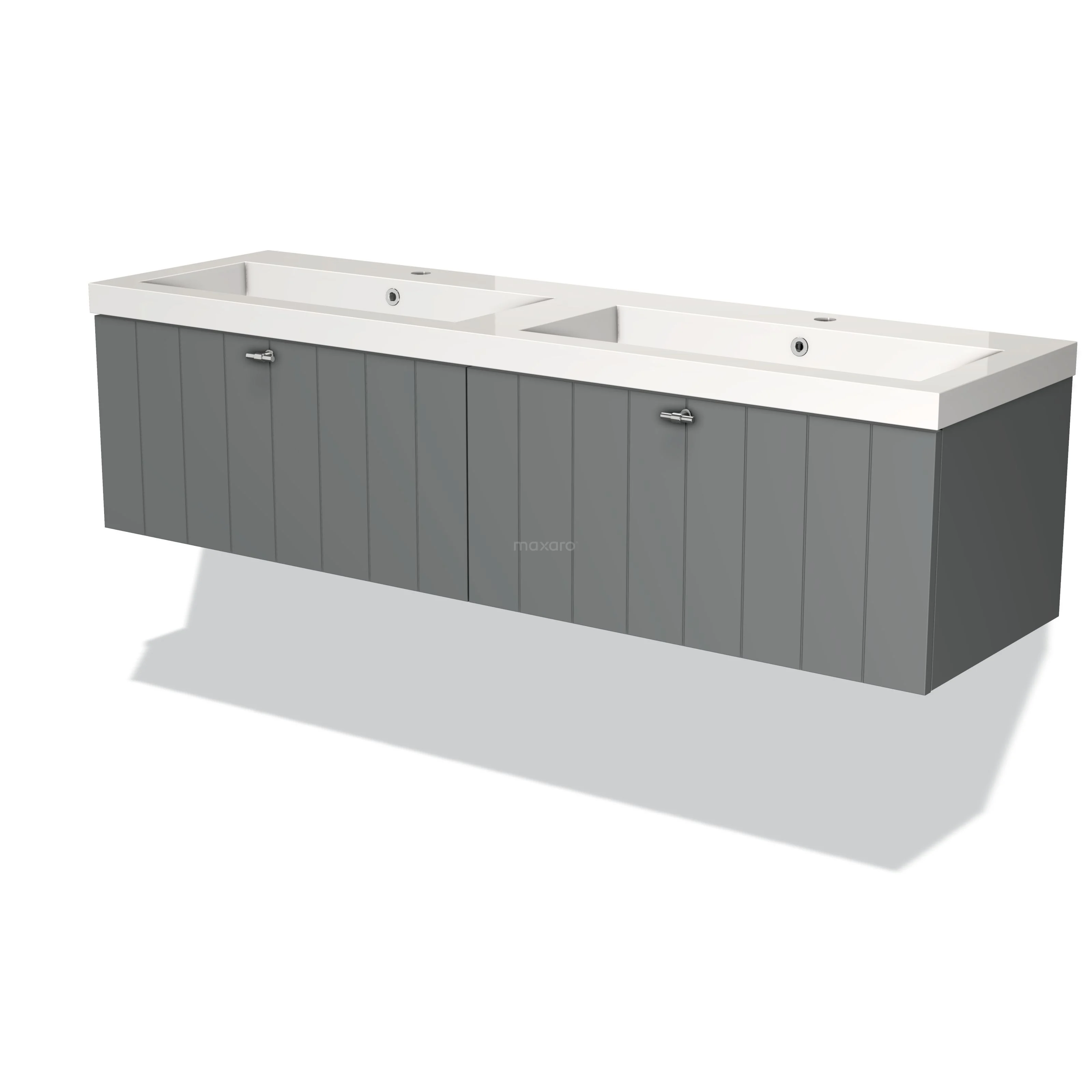 Badmöbel 160cm Modulo Mittelgrau 2 Schubladen Lattenrost Waschbecken Mineralguss
