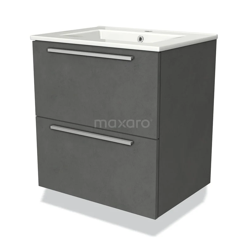 Badmöbel 60cm Modulo Dunkelgrau Beton 2 Schubladen Flaches Waschbecken Keramik